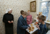 - Ковалевский детский дом (г.Нерехта Костромской области) Действует с 1996 года. Проживают дети-сироты и дети, оставшиеся без попечения родителей (социальные сироты). Воспитанники обучаются в общеобразовательных школах города и района, обеспечиваются питанием и одеждой. Имеется собственное подсобное хозяйство: молочная ферма, свинарник на 100 голов, пасека и 300 га сельхозугодий. Директор детского дома – протоиерей Андрей Воронин устраивает с детьми восхождение в горы (например, на Эльбрус).