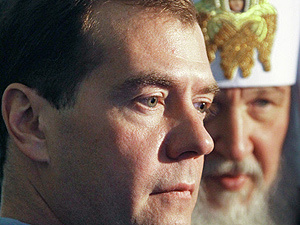 Следующая часть экспозиции посвящена епархиям Русской православной церкви по всему миру. На интерактивной карте можно выбрать любую епархию и получить о ней все данные. Медведева заинтересовала православная церковь, построенная на острове Ватерлоо в Антарктиде. Президент и патриарх также подошли к стенду, оснащенному мультимедийным экраном и динамиком в форме колокола. Он позволяет услышать уникальный звон колоколов той или иной церкви. Медведев решил послушать, как звонят колокола Ипатьевского монастыря в Костроме. Есть на выставке и интерактивный книжный стенд, позволяющий просматривать церковные книги. Медведев пролистал «Каноническое право». – Это близкая мне материя, – заметил президент, изучавший в университете юриспруденцию. На детской благотворительной ярмарке Медведеву и патриарху подарили по самодельной тряпичной кукле, выполненной в старой русской технике. Кроме того, президент и глава РПЦ купили на ярмарке по чашке. Все собранные на ярмарке деньги пойдут в фонды помощи. После посещения выставки Медведев пообщался с представителями православной общественности. – Если говорить о том, что случилось за эти 20 лет с точки зрения моих ощущений, как православного человека, это просто чудо. Я не мог себе представить 15-20 лет назад, что восстановление, обретение веры для огромного количества наших сограждан, пойдет такими темпами, – сказал президент. В то же время, Медведев отметил, что помимо ценных и продуктивных веяний, в общество проникает «мусор». – Я имею в виду, всякого рода разрушительные доктрины, которые порождают социальную рознь, вражду, насилие, нестабильность в нашей стране, которые, к сожалению, просто уродуют людей, – пояснил президент и призвал продвигать традиционные ценности. Медведев пообещал, что даст поручение Минобороны скорее воссоздать институт военного духовенства. Эти инициативу РПЦ президент поддержал еще в 2009 году. Однако сейчас в армии служат всего 19 священников, хотя изначально планировалось, что их будет более двухсот. – Здесь надо действовать энергичнее и для этого необходимо проявить и государственную волю. Я считаю, что министерству обороны пора в этом смысле разворачивать более активную работу. Соответствующее поручение министерству обороны я дам, – пообещал президент. Один из участников встречи пожаловался президенту на то, что зарплата священнослужителей в армии сейчас составляет всего 10-12 тысяч рублей. – Кто-то кого-то обманывает. Я специально задавал этот вопрос министру обороны. Он уверил меня, что если не сию секунду, то начиная со следующего года заработная плата капелланов и тех, кто служит в подразделениях Минобороны, – православных священников, а также представителей мусульманской церкви – будет в районе 40 тысяч рублей. То есть она будет приблизительно соответствовать уровню дохода, который будет иметь лейтенант, – ответил Медведев и пообещал проверить эти данные. Медведев также не исключил, что больше времени на изучение религии будет отводиться и в школах. – Я этого не исключаю, но если и переходить к более расширенному преподаванию, это нужно делать с согласия родителей школьников и, может быть, с использованием пилотных регионов, где можно эту модель обкатать перед распространением ее на другие школы, – отметил президент. Ваш комментарий: |